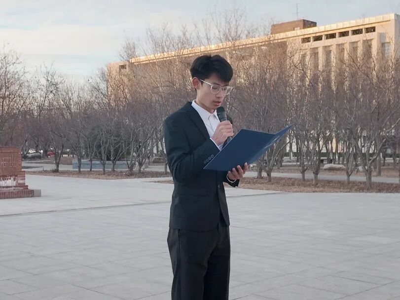 材物US221班崔同伋作为学生代表的发言铿锵有力,他带领大家重温“一二·九”运动的烽火岁月,立下“苦练专业本领、勇担时代使命”的青春誓言,彰显出亚工青年将爱国情、强国志转化为钻研技术、铸就国之重器的坚定决心,展现了新时代青年的责任与担当。